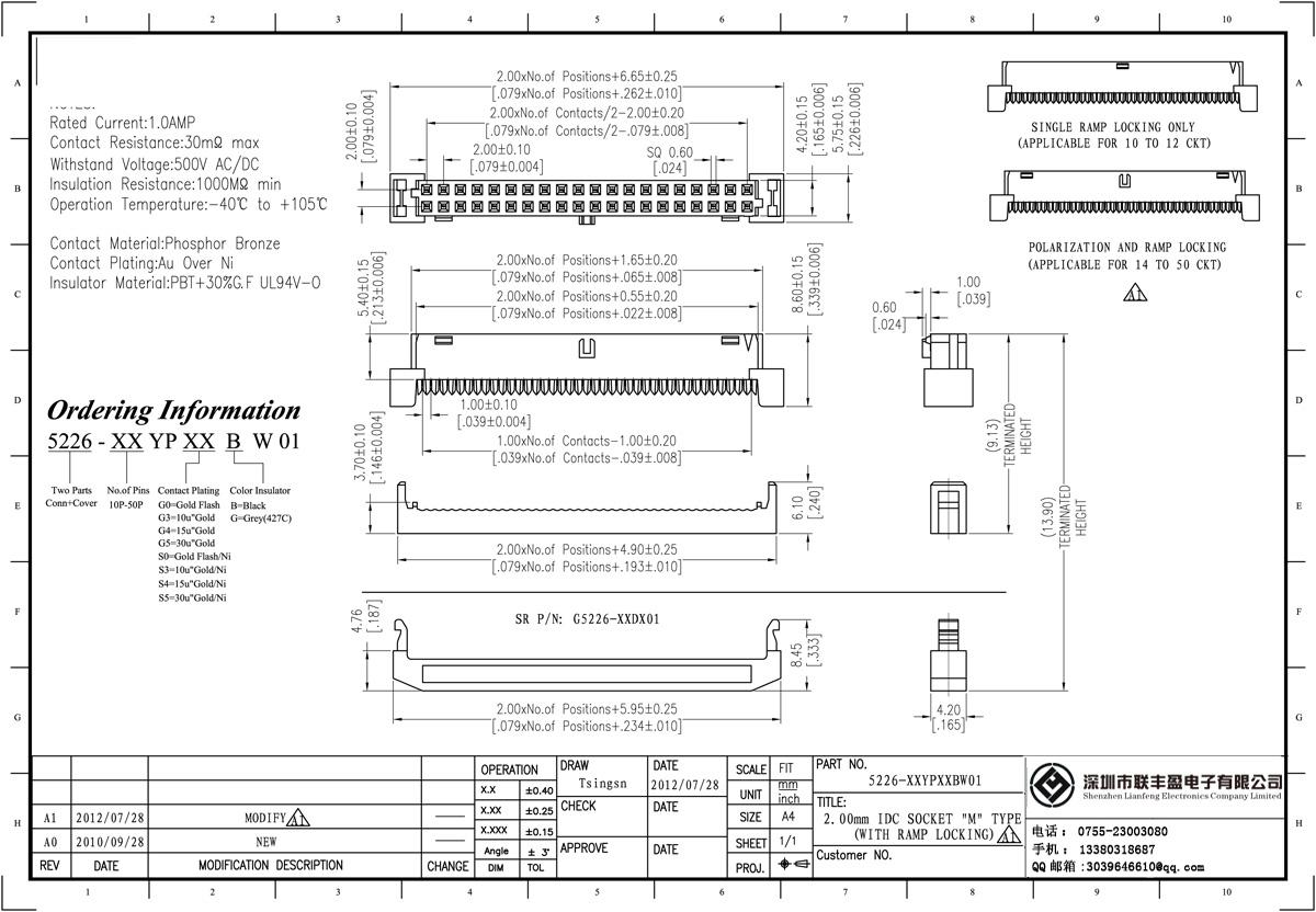 技術參數:額定電流:1.0amp電流電阻:20mΩ最大絕緣電阻:1000mΩmin耐壓:1000V AC /分鐘工作溫度:40﹣℃+ 105℃接觸材料:黃銅觸點電鍍金或錫鎳絕緣體材質:聚酯(UL94V-O)標準:PBT的+ 30% GF