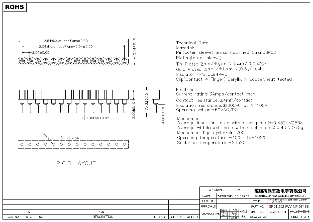 產品簡介品名:排母規格:插件/直式180°間距:2.54mmPIN數:2-40PIN備注:圓孔排母系列